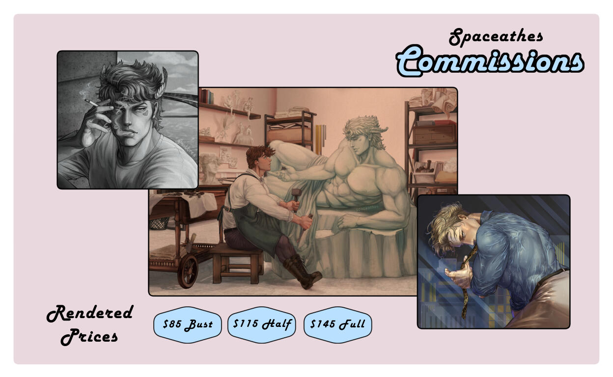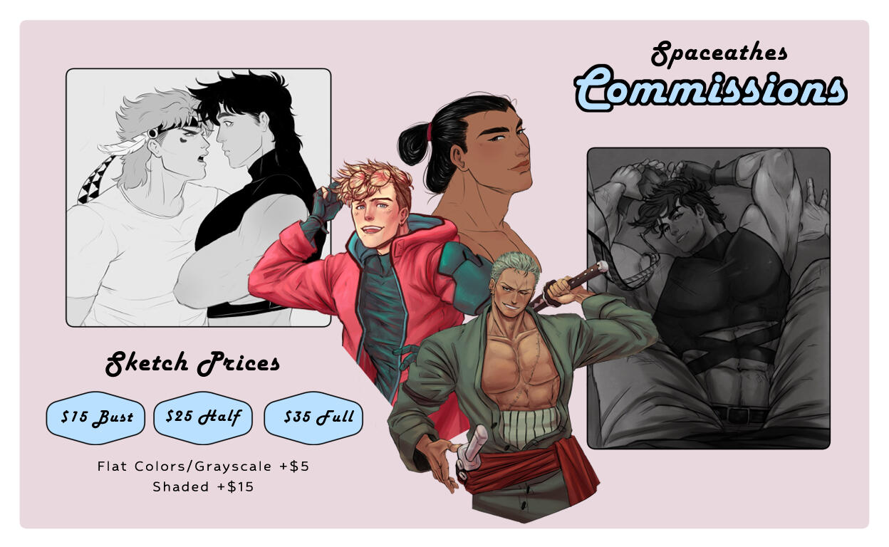Additional characters costs the same as a single character (e.g. full body sketch: single $35 | couple $70)